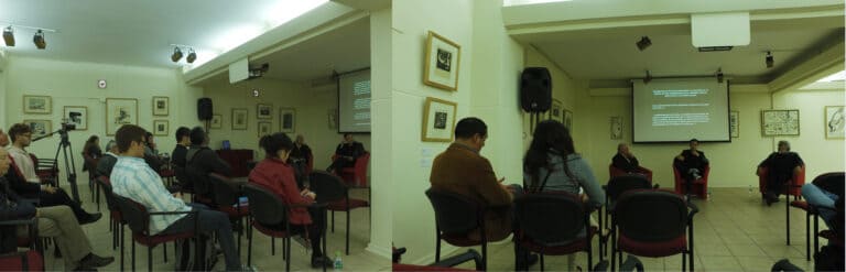 Conversatorio con la participación de académicos Universidad de La Serena: Daniel Palominos y Luis Rivera junto al curador del proyecto Christian Leyssen.