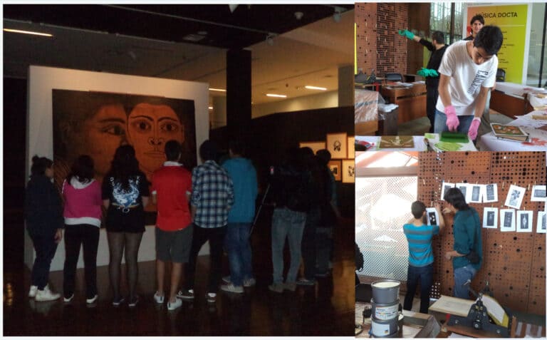 Acciones de mediación en conjunto con la organización Red Mediación Artística, profesores, estudiantes de 7º y 8º básico de los establecimientos educacionales municipales de la comuna de Santiago: Escuela Salvador Sanfuentes, República de Panamá y República de Israel.